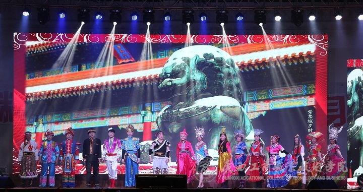 ? ? ? ?本次晚會在經(jīng)管系全體教師帶來的歌伴舞《不忘初心》,拉開了帷幕。緊接著由學院辦公室蒙曉瑩、梁龍、常榮榮帶來舞蹈《紅高粱》,晚會氣氛更加熱烈,尖叫聲響徹整個文體館。繼續(xù)教育部譚波、段小斌、白翊新的歌曲《我只在乎你》,歌聲優(yōu)美、動聽,令人陶醉其中。會計系覃超穎、李娜、栗衛(wèi)紅等帶來舞蹈《共圓中國夢》,在舞臺上大放光彩,不僅舞出了中華民族的民族夢、復興夢,更體現(xiàn)了中華兒女奮發(fā)向上、共筑中國夢的豪情,深深打動人心。離退科蘇廷玉的蕭獨奏《贊歌》,簫聲清麗,回旋婉轉,讓人感受到蕭這種非常古老的中國古代吹奏樂器的魅力。教務科研處全體教師帶來《中國美》,用走秀與說唱結合的形式展現(xiàn)出少數(shù)民族的獨特魅力及中華民族獨一無二的風骨和神韻,感受到中國生氣勃勃的風貌。公共基礎部朱武壽、潘巧帶來拉丁舞《葬心》,熱情奔放、柔美歡快。財信系全體教師帶來情景劇《剛好遇見你》,簡單的歌詞描繪出清新溫暖的畫面,帶觀眾回憶了大學生活,令人感動。會計系覃鋆鋆、李洪業(yè)、楊云雁等帶來詩歌朗誦《不忘初心、繼續(xù)前進》,充分表現(xiàn)出繼往開來、逐夢前行的勇氣、擔當和智慧。學工處全體教師帶來歌伴舞《海芋戀》,用歡快的歌聲展現(xiàn)出各個年代教師不變的青春風采。鳴校辦莫振俊、藍高銘、李耀翠等帶來歌曲《明天會更好》,展現(xiàn)了中國人內(nèi)心深處執(zhí)著不變的對生活和民族夢想的美好追尋。經(jīng)管系馬力、歐少亮、黃超倫等帶來朗誦《今天我們這樣愛國》,訴說著一個承載著萬千人愛的母親——中國。財信系雷英、楊艷、羅翔尹等帶來歌舞《山鬼》,上演了一幕濃墨重彩的愛情悲劇。學院辦公室覃遠霞、林昆榮、李筱翎等帶來合唱《彈起我心愛的土琵琶》,這首有濃厚地方色彩的歌,表現(xiàn)出游擊隊員在艱苦環(huán)境中的堅強革命意志和樂觀主義精神。公共基礎部楊柳、張居設、朱武壽等帶來歌曲《天路一工間操》,深情款款的歌聲,活力四射的健身操,默契十足的表演引來無數(shù)同學的拍手稱道?,F(xiàn)教中心林雯、梁保恩等帶來歌曲聯(lián)唱《歲月如歌》,讓人感嘆人生之路并不平坦,如同一首歌,無論怎么精彩,總會有唱完的時候。后勤處全體教師帶來歌曲《國家》,憑借其激昂的曲調(diào)帶動起觀眾火熱的心。院大學生藝術團的精彩表演也將晚會氣氛一次又一次推向高潮。