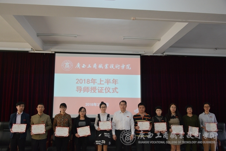 ? ? ? ? 接著,舉行了2018年上半年導(dǎo)師授證儀式。青年教師給導(dǎo)師獻(xiàn)花行鞠躬禮,教師表示感謝,并合影留念。