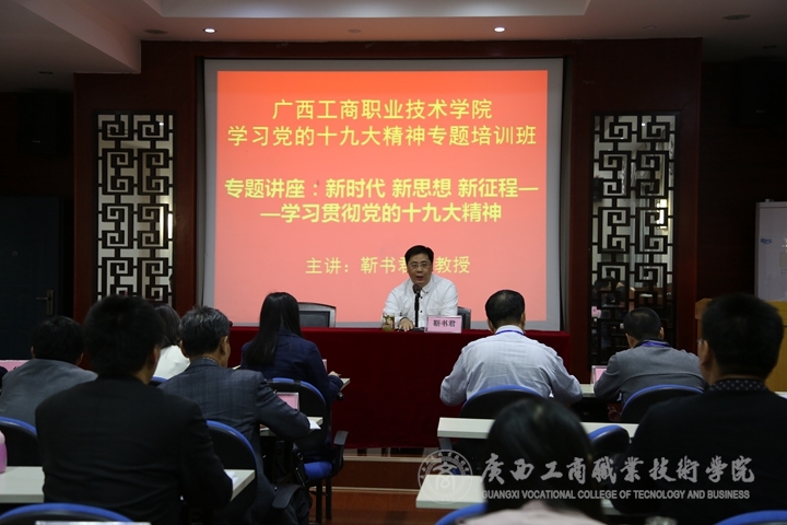 ? ? ? ? 開(kāi)班儀式結(jié)束后,第二期培訓(xùn)立即進(jìn)入第一課的專題講座:新時(shí)代 新思想 新征程——學(xué)習(xí)貫徹黨的十九大精神。講座由廣西師范大學(xué)馬克思主義學(xué)院副院長(zhǎng)靳書(shū)君教授為學(xué)員解讀黨的十九大精神。靳書(shū)君教授圍繞站在什么樣的歷史起點(diǎn)、實(shí)現(xiàn)什么樣的奮斗目標(biāo)、關(guān)于舉什么旗、關(guān)于走什么路、關(guān)于以什么樣的精神面貌去走等方面結(jié)合實(shí)際案例,以豐富的數(shù)據(jù)內(nèi)容、獨(dú)特的視角深刻解讀了黨的十九大精神。靳教授全程脫稿解說(shuō),理論功底深厚,講座緊貼實(shí)際、風(fēng)趣幽默、通俗易懂,對(duì)學(xué)員深入學(xué)習(xí)貫徹好黨的十九大精神具有很強(qiáng)的針對(duì)性和指導(dǎo)性。