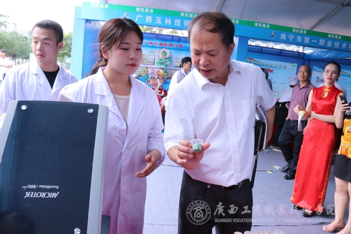 (我院學(xué)生向參展嘉賓介紹展品)