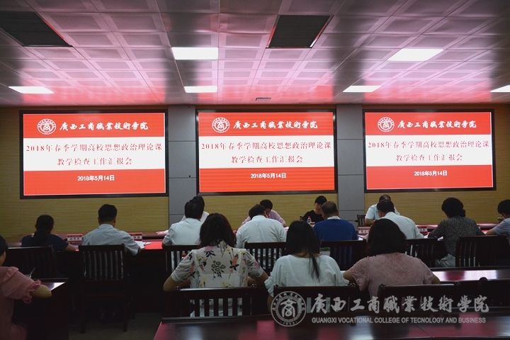 2018年5月14日上午,2018年春季學(xué)期高校思想政治理論課教學(xué)檢查組專家蒞臨我院進(jìn)行思想政治理論課教學(xué)檢查指導(dǎo)工作。學(xué)院黨委書記覃武云、院長陳杰、黨委副書記紀(jì)委書記蒙啟成、副院長李維、以及我院各個部門相關(guān)負(fù)責(zé)人接待了檢查組專家。檢查組由廣西師范學(xué)院正廳級調(diào)研員、第五屆廣西高校思想政治理論課教育教學(xué)指導(dǎo)委員會副主任委員李繼兵教授擔(dān)任組長,廣西醫(yī)科大學(xué)覃桂秀教授,桂林醫(yī)學(xué)院王光秀教授,第五屆廣西高校思想政治理論課教育教學(xué)指導(dǎo)委員會委員、廣西財(cái)經(jīng)學(xué)院楊勇教授為本次教育廳檢查組成員組成。本次教學(xué)檢查工作圍繞貫徹落實(shí)《高等學(xué)校思想政治理論課建設(shè)標(biāo)準(zhǔn)》、高校思想政治理論課教學(xué)改革情況、習(xí)近平新時(shí)代中國特色社會主義思想和黨的十九大精神及2018年全國兩會精神進(jìn)課堂情況等內(nèi)容進(jìn)行。檢查共分走訪、聽課、匯報(bào)會、師生座談會和反饋會5個環(huán)節(jié)。