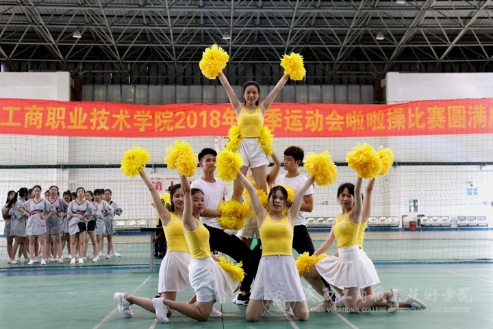 ? ? ? ? 經(jīng)過了激烈的角逐之后,評委老師給參賽隊伍帶來了啦啦操表演,并講解了一些高難度動作的要領(lǐng)和方法,還不忘提醒參賽隊伍要時刻注意安全。最后,評委老師宣布本次比賽成績,獲得一等獎的是財信系街舞隊、經(jīng)管系花球啦啦操一隊,獲得二等獎的是會計系街舞隊、財信系花球啦啦操隊,獲得三等獎的是經(jīng)管系街舞隊、經(jīng)管系花球啦啦操二隊。比賽結(jié)束后,各參賽隊合影留念。至此,我院2018年春季運動會舞蹈啦啦操比賽圓滿結(jié)束。