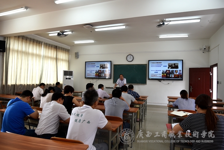 ? ? ? ? 2018年06月14日下午15:00,后勤管理處黨支部、鳴校辦黨支部和資產(chǎn)管理中心黨支部在鵬飛校區(qū)聯(lián)合開展黨課學習活動,本次黨課主講人為學院副院長李仕欽,后勤管理處黨支部、鳴校辦黨支部和資產(chǎn)管理中心黨支部全體黨員參與。