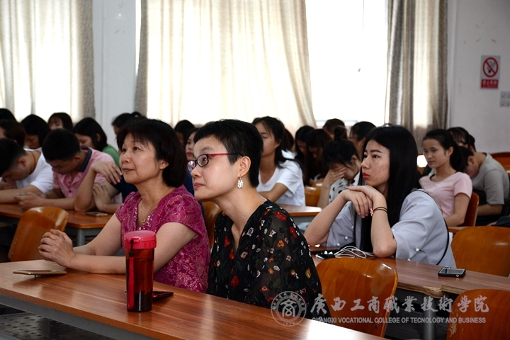 ? ? ? ? 2018年6月19日下午,會(huì)計(jì)系校友報(bào)告會(huì)在學(xué)院鵬飛校區(qū)報(bào)告廳召開。南寧市金譽(yù)聯(lián)合會(huì)計(jì)師事務(wù)所副所長(zhǎng)黃寶玉校友返校為學(xué)院師生做報(bào)告。