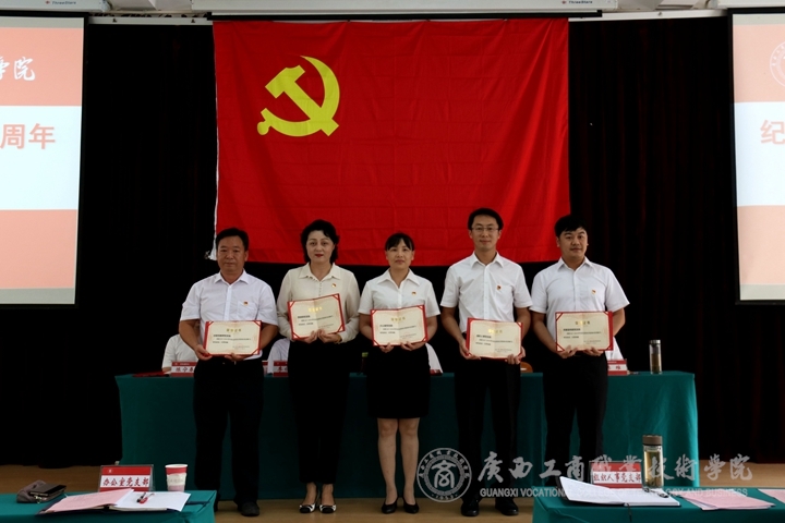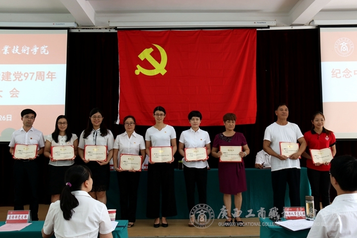 ??????? 6月26日下午,我院于鵬飛校區(qū)教學樓會議室召開中共廣西工商職業(yè)技術學院委員會慶祝中國共產(chǎn)黨建黨97周年黨員大會。全體在職教職工黨員、離退休教職工黨員代表、新入黨學生黨員參加本次會議,本次會議由院長陳杰同志主持。