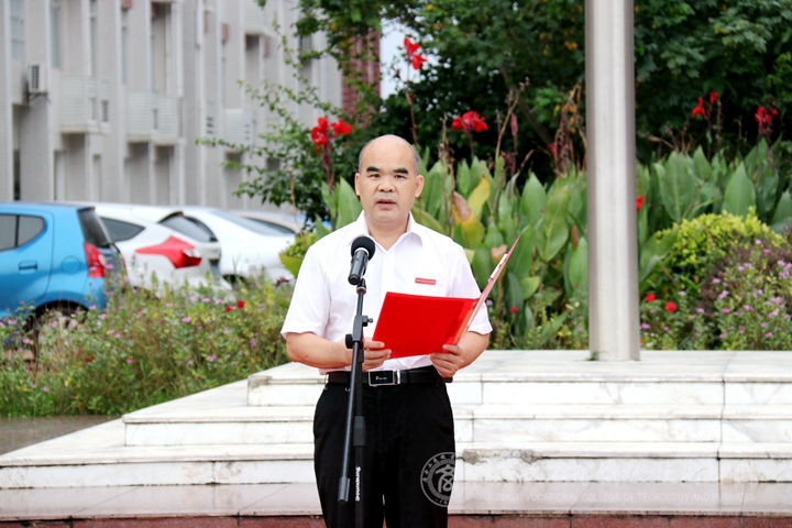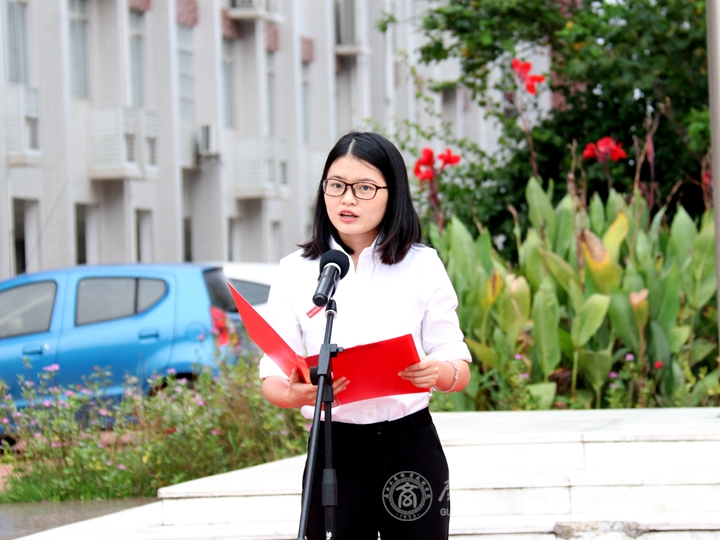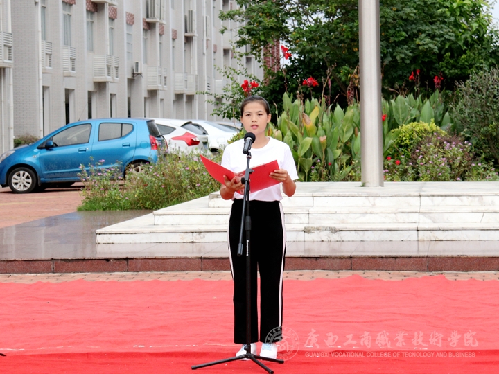 升旗儀式由學(xué)院領(lǐng)導(dǎo)副院長(zhǎng)陳寧春主持,學(xué)院黨委書(shū)記覃武云在國(guó)旗下發(fā)表新學(xué)期開(kāi)學(xué)講話。