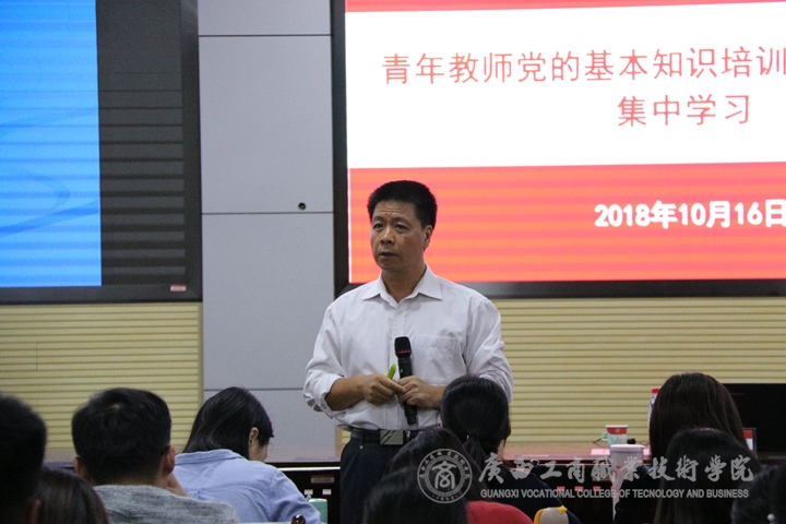 10月16日下午,學(xué)院于鵬飛校區(qū)視頻會(huì)議室召開(kāi)青年教師黨的基本知識(shí)專題培訓(xùn)班(第二期)開(kāi)班動(dòng)員會(huì)暨專題講座。學(xué)院30歲以下(含30歲)黨員教師和35歲以下(含 35 歲)非黨員教師等學(xué)員參加。專題講座邀請(qǐng)中共廣西區(qū)委黨校、廣西行政學(xué)院公共管理教研部熊水龍副教授主講。