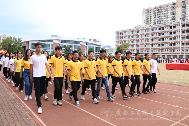 最后,陳杰院長宣布:廣西工商職業(yè)技術(shù)學(xué)院2018年度秋季運(yùn)動會開幕。