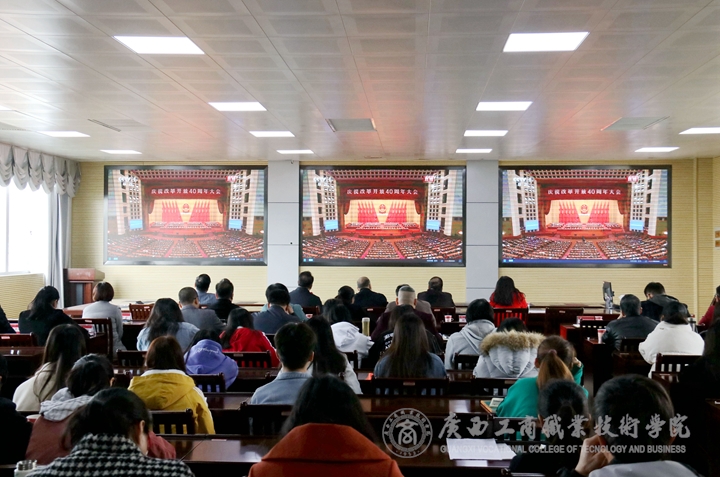 12月18日上午10時(shí),中共中央、國(guó)務(wù)院隆重舉行慶祝改革開放40周年大會(huì),中央領(lǐng)導(dǎo)同志出席大會(huì),中共中央總書記、國(guó)家主席、中央軍委主席習(xí)近平在大會(huì)上發(fā)表重要講話。我院組織師生于鵬飛校區(qū)視頻會(huì)議室集體收看大會(huì)電視直播,學(xué)院黨委書記覃武云、院長(zhǎng)陳杰和全體中層以上干部、各黨總支、直屬黨支部委員、思想政治理論課專兼職教師和各系學(xué)生代表參觀看了大會(huì)直播。