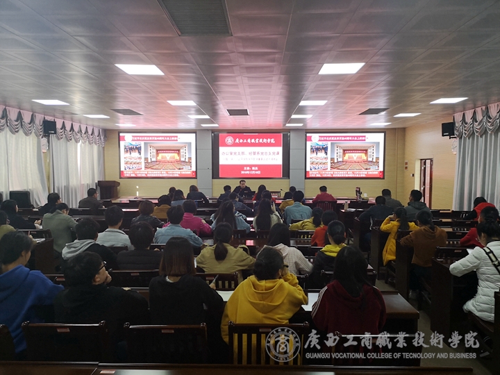 2018年12月18日下午,學(xué)院院長(zhǎng)陳杰同志在2119視頻會(huì)議室為辦公室黨支部、經(jīng)管系黨總支上黨課。此次黨課由辦公室黨支部書(shū)記覃遠(yuǎn)霞主持,辦公室黨支部全體黨員、經(jīng)管系黨總支教師黨員、學(xué)生黨員及入黨積極分子參加了此次黨課的學(xué)習(xí)活動(dòng)。