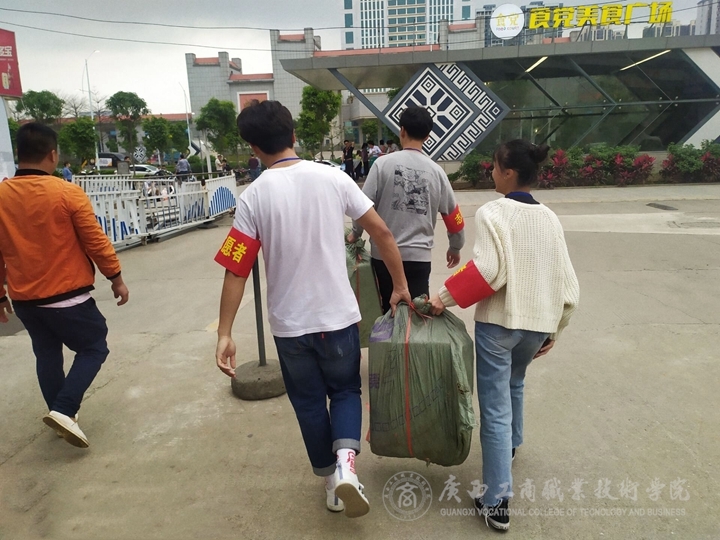 ??????? 3月5日上午,學(xué)院團(tuán)委的志愿者們前往龍騰社區(qū)開(kāi)展慰問(wèn)五保戶活動(dòng),下午前往南寧市朝霞?xì)埣矁和祻?fù)服務(wù)中心開(kāi)展以“學(xué)雷鋒,獻(xiàn)愛(ài)心,情暖兒童園”為主題的志愿服務(wù)。同時(shí),各學(xué)生組織、社團(tuán)開(kāi)展“餐桌上的‘禮儀’”活動(dòng)和“你的重量我?guī)湍惴謸?dān)”地鐵志愿者活動(dòng),分別在食堂進(jìn)行臺(tái)簽擺放、標(biāo)語(yǔ)粘貼,在校園主干道進(jìn)行“光盤行動(dòng)”倡議墻簽字活動(dòng);在鵬飛路B地鐵口和西鄉(xiāng)塘客運(yùn)站H地鐵口幫助路人搬運(yùn)行李和引路,踐行弘揚(yáng)學(xué)習(xí)雷鋒全心全意為人民服務(wù)、無(wú)私奉獻(xiàn)的精神;在鵬飛校區(qū)教學(xué)樓開(kāi)展“學(xué)習(xí)雷鋒精神,打掃文明教室”活動(dòng)。