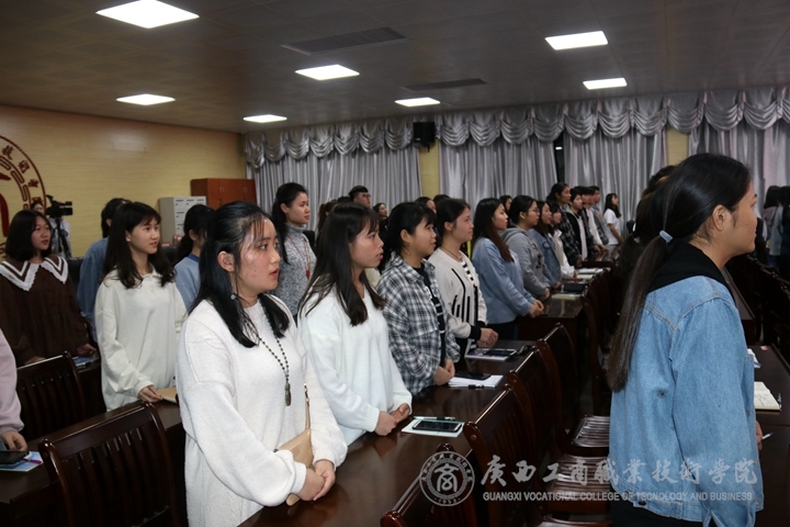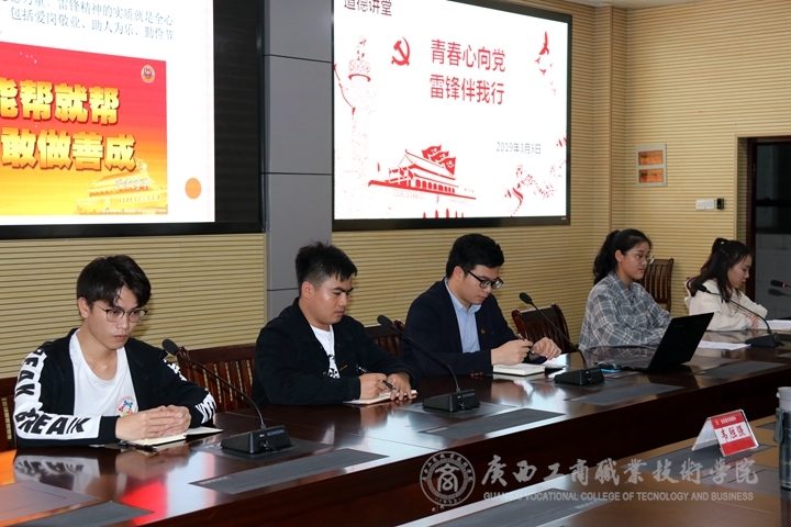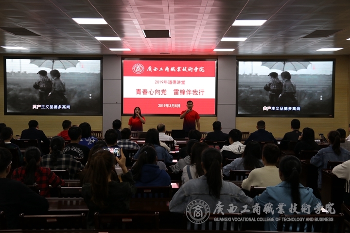 ??????? ?"學(xué)習(xí)雷鋒好榜樣,忠于革命忠于黨,愛(ài)憎分明不忘本,立場(chǎng)堅(jiān)定斗志強(qiáng)。"2019年3月5日晚上,廣西工商職業(yè)技術(shù)學(xué)院鵬飛校區(qū)教學(xué)樓報(bào)告廳響起了一陣簡(jiǎn)潔明快、鏗鏘有力的歌聲。這首曾經(jīng)感染和激勵(lì)著一代又一代人的《學(xué)習(xí)雷鋒好榜樣》,此時(shí)此刻,激起了在現(xiàn)場(chǎng)的廣商院人“唱雷鋒,學(xué)雷鋒,做雷鋒”的滿腔熱忱,營(yíng)造著向上向善、德行天下的良好風(fēng)尚。