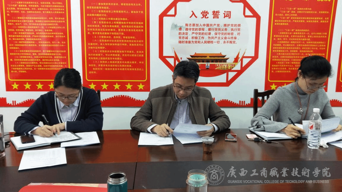 ? ? ? ? 會上,首先由張宇斐向大會作學(xué)生黨支部2018年黨建工作總結(jié),分別從政治建設(shè)、思想建設(shè)、組織建設(shè)、作風(fēng)建設(shè)和紀律建設(shè)等五個方面匯報了支部建設(shè)情況,指出在黨員隊伍建設(shè)、網(wǎng)絡(luò)輿情監(jiān)控、推進基層黨組織建設(shè)和校外學(xué)生黨員培養(yǎng)工作中有較為突出的亮點。同時,對黨支部2019年黨建工作提出新的要求:一是加強對大學(xué)生黨員教育的有效方法、管理內(nèi)容、管理機制和活動形式等內(nèi)容進行研究和創(chuàng)新;二是加強組織理論學(xué)習(xí),豐富黨員活動形式;三是加強先進黨員的培育和榜樣宣傳力度。接著,是開展全體黨員的批評與自我批評環(huán)節(jié),每位黨員都能嚴格按照程序從學(xué)習(xí)貫徹習(xí)近平新時代中國特色社會主義思想,樹牢“四個意識”、堅定“四個自信”、堅決做到“兩個維護”和履職踐諾、擔(dān)當(dāng)作為、真抓實干、遵規(guī)守紀等方面查找差距和不足,認真剖析存在問題的原因及確定下一步整改計劃。同時,每位黨員都依次對其他黨員同志提出批評與建議,內(nèi)容涵蓋了教學(xué)管理、科研立項、教學(xué)方法、學(xué)生管理、突發(fā)事件應(yīng)急處理、人際溝通等方面,為每位黨員進一步加強自身綜合能力提供了更多可行性的方法和寶貴意見。在批評和自我批評之后,開展民主評議黨員活動,依次進行個人自評、黨員互評和民主測評。