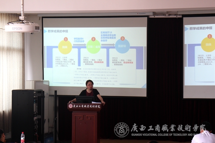 ? ? ? ? 此次培訓分為兩個部分。第一部分由高職研究所孫曉宇老師介紹關于課題的申報與結題的有關事項,第二部分由李紅梅講解關于教學成果獎的申報與培育有關事項。孫曉宇從課題的申報類型、申報流程、如何結題、注意事項等方面展開介紹。李紅梅則圍繞什么是職業(yè)教育的教學成果、如何培育教學成果、第七屆和第八屆國家級職業(yè)教育教學成果獎的回顧與分析、申報職業(yè)教育教學成果獎需要注意的問題及案例分析等方面進行了詳細講解。