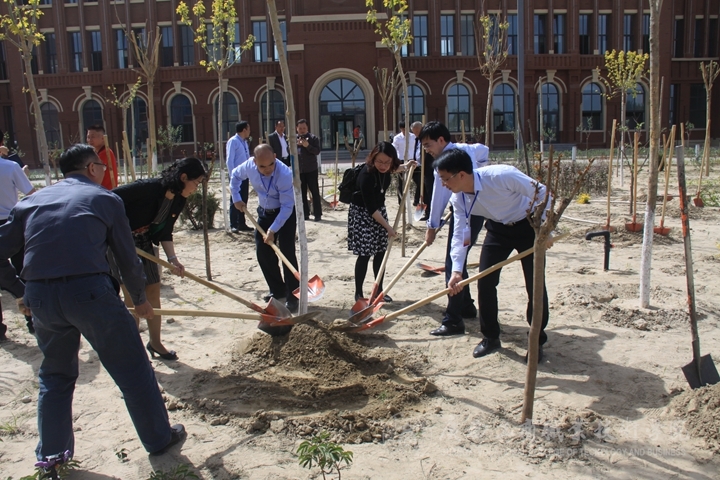 ? ? ? ? 會(huì)后,學(xué)院黨委書記覃武云與和田地委委員、行署副專員、地委教育工委副書記張建、地區(qū)教育局領(lǐng)導(dǎo)等同志,一同來(lái)到和田職業(yè)技術(shù)學(xué)院教學(xué)樓前共同植樹留念。