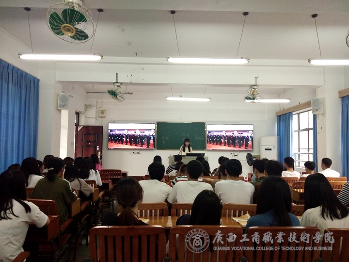 (財信系學(xué)生觀看征兵宣傳片和第二屆全國大學(xué)生主題演講精選錄像)