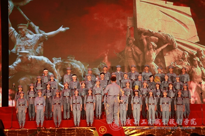 第一篇章是《青春筑夢》。由學(xué)院大學(xué)生藝術(shù)團(tuán)戲劇社、禮儀隊、聲樂隊帶來的情景劇《追憶1919》,在一連串精心編排的表演中,重溫了五四運動的緣起、發(fā)展以及建黨、建團(tuán)的歷史;學(xué)院大學(xué)生記者團(tuán)激情澎湃的朗誦《百年前的那一聲怒吼》,贏得了陣陣掌聲;在工商1803班的合唱《打靶歸來》氣勢磅礴的歌聲下,結(jié)束了《青春筑夢》的篇章。