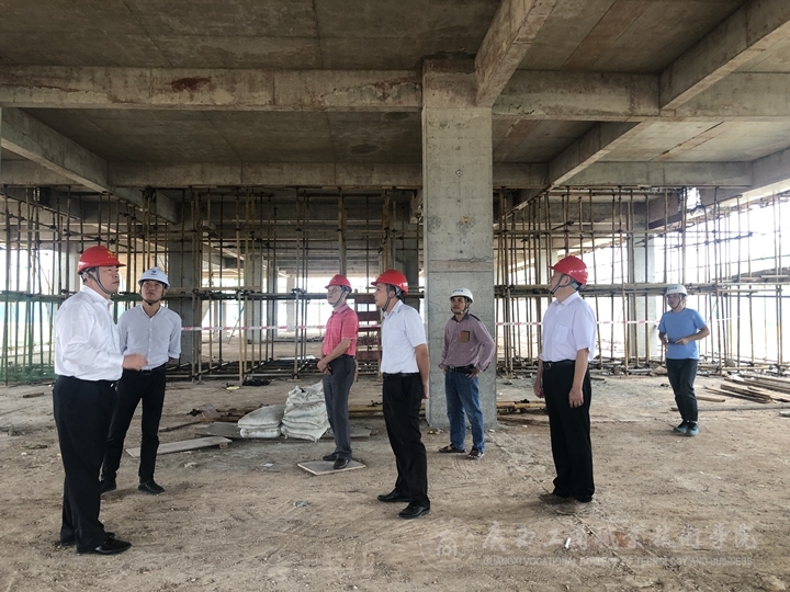 ??????? 2019年5月22日上午,我院武鳴校區(qū)一期工程行政綜合樓(東A-7棟)順利封頂,學(xué)院院長(zhǎng)陳杰現(xiàn)場(chǎng)視察、指導(dǎo)建設(shè)工作。副院長(zhǎng)李仕欽、武鳴校區(qū)建設(shè)指揮部辦公室全體工作人員及參建單位相關(guān)負(fù)責(zé)同志陪同視察。