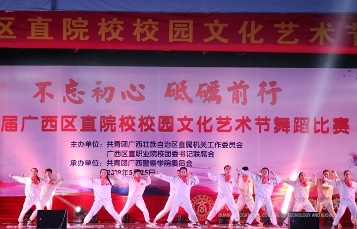 ??????? 2019年5月25日,學(xué)院大學(xué)生藝術(shù)團(tuán)舞蹈隊(duì)前往廣西警察學(xué)院參加2019年“不忘初心 砥礪前行”第七屆廣西區(qū)直院校校園文化藝術(shù)節(jié)舞蹈比賽,學(xué)院大學(xué)生藝術(shù)團(tuán)舞蹈隊(duì)表演的舞蹈《龍魂》在眾多強(qiáng)隊(duì)中脫穎而出,榮獲了高職組一等獎(jiǎng)的好成績。