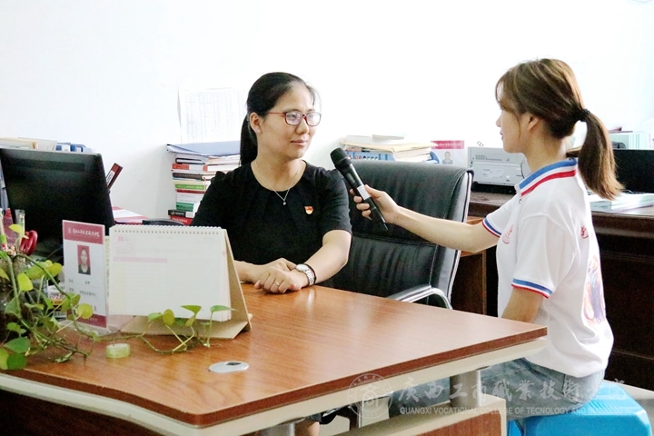? ? ? ? 2019年6月13日下午,學(xué)院新聞中心記者陸柳柳于廣西工商職業(yè)技術(shù)學(xué)院鵬飛校區(qū)辦公室,對我院獲批廣西高校思想政治教育杰出人才支持計劃第一期培養(yǎng)對象的趙婷老師進(jìn)行專訪。