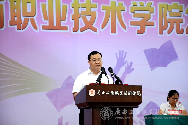 ??????? 隨后,李維院長作講話,他代表學(xué)院對2940名畢業(yè)生致以最熱烈的祝賀和最美好的祝愿。他指出,當(dāng)今時(shí)代,是機(jī)遇與挑戰(zhàn)并存的時(shí)代,更是我們追逐夢想、實(shí)現(xiàn)夢想的嶄新時(shí)代。他對畢業(yè)生以“筑夢”、“追夢”、“圓夢”三個關(guān)鍵詞談及他的感受,一是“筑夢”,三年來的春華秋實(shí),同學(xué)筑夢了廣商院,經(jīng)歷了充實(shí)的求學(xué)時(shí)光,完成了自己在思想和知識技能上的大跨越,系上了學(xué)生們?nèi)松P(guān)鍵的一粒扣子。二是“追夢”,希望畢業(yè)生在未來的人生路上,無論是面對工作的壓力,還是經(jīng)歷創(chuàng)業(yè)的艱辛,也要堅(jiān)持至“滿血復(fù)活”,繼續(xù)“披掛上陣”不要輕言放棄。三是“圓夢”,習(xí)近平總書記說過:我們“95后”大學(xué)生是可愛、可信、可為的一代,希望畢業(yè)生謹(jǐn)記“好學(xué)者上”。要堅(jiān)持提高思想政治素養(yǎng),樹立“四個意識”,堅(jiān)定“四個自信”,堅(jiān)決做到“兩個維護(hù)”;樹立強(qiáng)烈的家國情懷,提高自身人文道德修養(yǎng),永葆進(jìn)取之心;要時(shí)刻堅(jiān)守做人的底線和良知,大力弘揚(yáng)積極向上之正氣;要培養(yǎng)和增強(qiáng)創(chuàng)新精神,做新時(shí)代的引導(dǎo)者和實(shí)踐者。