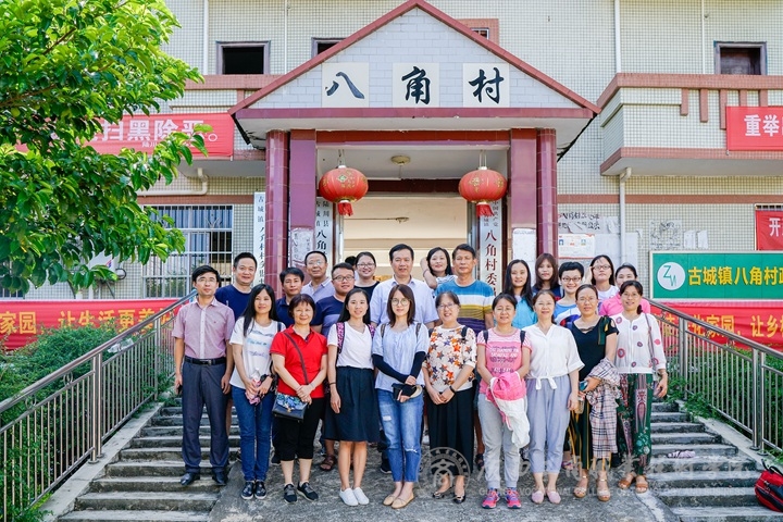 (與村干部和結(jié)對幫扶進村入戶走訪的教職工合影)