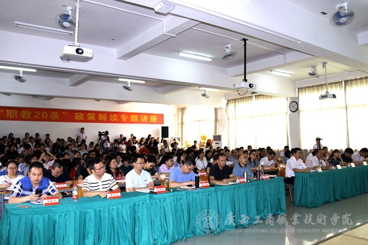 ? ? ? ? 為進(jìn)一步貫徹落實(shí)《國(guó)家職業(yè)教育改革實(shí)施方案》精神,持續(xù)推進(jìn)學(xué)院產(chǎn)教融合、校企合作、立德樹(shù)人工作,7月8日上午,我院于鵬飛校區(qū)教學(xué)樓報(bào)告廳邀請(qǐng)了教育部職業(yè)技術(shù)教育中心研究所評(píng)估中心副主任、全國(guó)職業(yè)教育集團(tuán)化辦學(xué)工作專家組成員周鳳華教授作題為《< 國(guó)家職業(yè)教育改革實(shí)施方案>背景下職業(yè)教育產(chǎn)教融合校企合作的實(shí)踐路徑與思考》專題講座。學(xué)院黨委書(shū)記覃武云、院長(zhǎng)李維、黨委副書(shū)記蒙啟成、副院長(zhǎng)李仕欽、副院長(zhǎng)陳寧春及全體職教工現(xiàn)場(chǎng)聆聽(tīng)了講座。