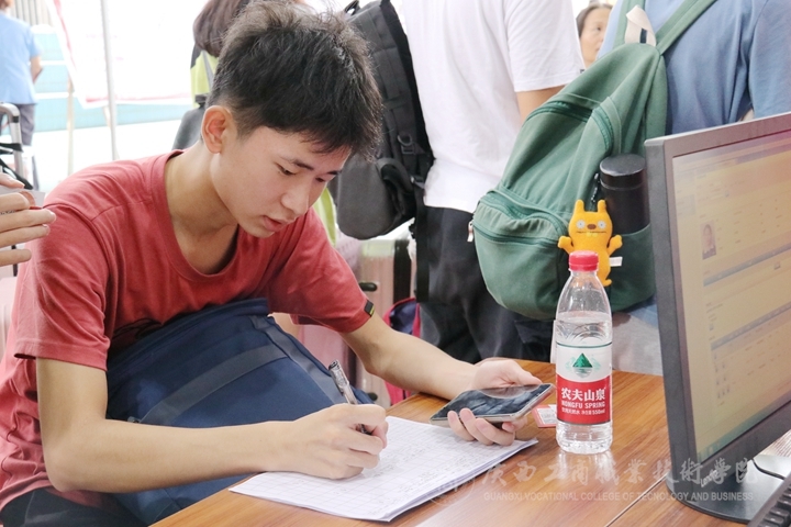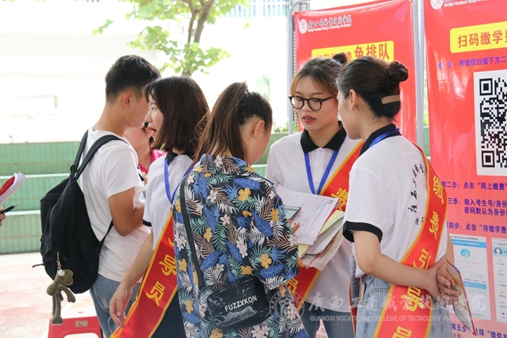 (繳費(fèi)引導(dǎo)員為新生講解)