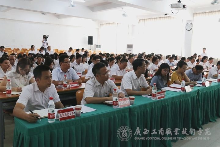 ? ? ? ? 9月16日上午,中共廣西工商職業(yè)技術(shù)學(xué)院委員會在鵬飛校區(qū)報告廳召開“不忘初心、牢記使命”主題教育工作會議。會議貫徹落實黨中央、自治區(qū)黨委關(guān)于主題教育的部署要求,對全院主題教育工作進行全面動員部署。自治區(qū)黨委“不忘初心、牢記使命”主題教育第七巡回指導(dǎo)組組長周懷營、副組長趙煥春、副組長俞健出席會議,俞健在會上發(fā)表講話,指導(dǎo)組其他同志到會指導(dǎo)。學(xué)院黨委書記覃武云在會上作動員講話,學(xué)院黨委副書記、院長李維主持會議。