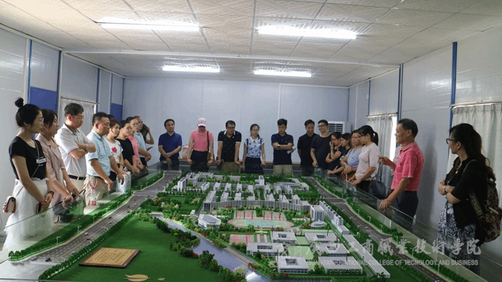 (黨員同志們?cè)谟^看我院武鳴新校區(qū)的沙盤模型)