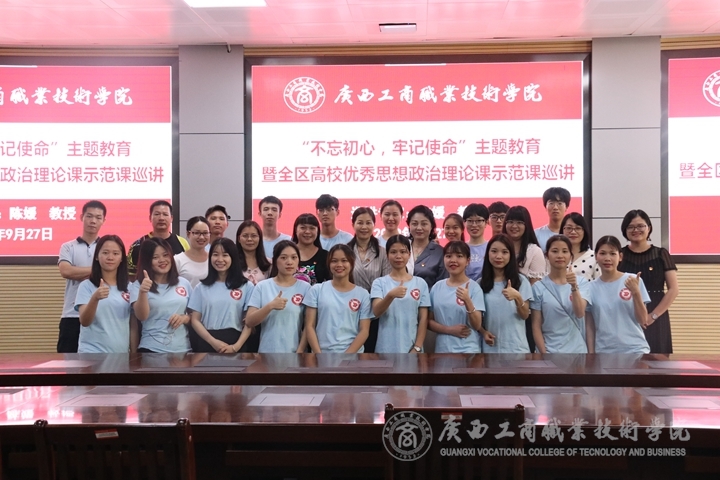 ??????? 上課結(jié)束后,師生們反響熱烈?;A(chǔ)課教研室王興華老師表示:“作為一名年輕的思政理論課教師,在聆聽完陳媛教授的講課后,受益良多。陳教授的講課不僅有理論深度,政治高度,也有生活溫度,她以自己所歷所見所聞感染學(xué)生,鼓舞學(xué)生,引導(dǎo)學(xué)生把握樹立理想信念的重要性,最后更是把大學(xué)生樹立理想信念的意義落腳到國家民族時代的需要上來,由小我上升至大我,進(jìn)一步引起了學(xué)生的共情?!薄八颊除垺背蓡T陸秀欣同學(xué)說;“聽了陳教授的巡講之后,我認(rèn)識到了兩點(diǎn):一是,人一定要有理想。沒有理想的人就會得軟骨病,沒有精氣神,導(dǎo)致對人生的迷茫;二是理想不單是個人理想,還要樹立民族理想、社會理想、基至是國家理想,把個人的理想融入到大的理想當(dāng)中才是一個好的理想?!?br />??????? 郭婷同學(xué)表示:“今天聽了陳教授的講座我得到了提升。一是,‘理想信念’對我們?nèi)松种匾?,‘理想信念’是我們?nèi)松摹}’,能夠起到催人奮進(jìn)的作用。二是,馬克思主義對于我們中國的特色社會主義道路的發(fā)展起到了重要的作用,作為青年人應(yīng)該把馬克思主義牢記于心。三是,當(dāng)代青年人的理想信念應(yīng)該同時代的發(fā)展結(jié)合起來,把民族的復(fù)興,國家的富強(qiáng)與自己的理想與責(zé)任緊密聯(lián)系在一起,努力奮斗,做一個對社會有貢獻(xiàn)的人。”蒙曉穎同學(xué)說,“在陳教授的這節(jié)課上,讓我更堅(jiān)定了我的目標(biāo)定位,成為一名共產(chǎn)黨員。努力學(xué)習(xí),做一名對國家有貢獻(xiàn)的新青年。有責(zé)任,有擔(dān)當(dāng),將自身的理想信念融入到祖國的建設(shè)當(dāng)中?!?br />??????? 通過這次“不忘初心、牢記使命”主題教育暨全區(qū)高校優(yōu)秀思想政治理論課示范課巡講活動,讓思政部的全體教師深切感受到了示范的力量,榜樣的力量。教師們紛紛表示,在今后教學(xué)工作過程中,要加強(qiáng)教學(xué)研究,著力提升思政部的整體教學(xué)能力。