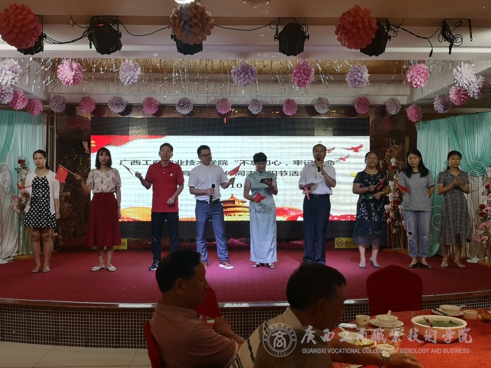 ? ? ? ? 金秋時節(jié),又逢重陽。2019年10月10日,學(xué)院工會(離退辦)舉行內(nèi)容豐富的“不忘初心、牢記使命”主題教育暨離退休同志重陽節(jié)活動。將主題教育落實到老同志系列活動中,力求主題教育取得實效。學(xué)院院長李維,黨委副書記、工會主席蒙啟成同志出席活動。