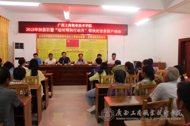 ? ? ? ? 在全國(guó)上下積極開展扶貧日系列活動(dòng)之際,結(jié)合“不忘初心、牢記使命”主題教育安排,教務(wù)科研處黨支部、財(cái)信系黨總支于10月17-18日,到陸川縣清湖鎮(zhèn)那若村開展了2019年扶貧日暨“結(jié)對(duì)幫扶行動(dòng)月”幫扶走訪貧困戶活動(dòng)。本次活動(dòng)由廣西工商職業(yè)技術(shù)學(xué)院院長(zhǎng)、黨委副書記李維帶隊(duì),活動(dòng)共有18名黨員教師參加,為那若村49戶貧困戶送去慰問(wèn)金1.47萬(wàn)元。