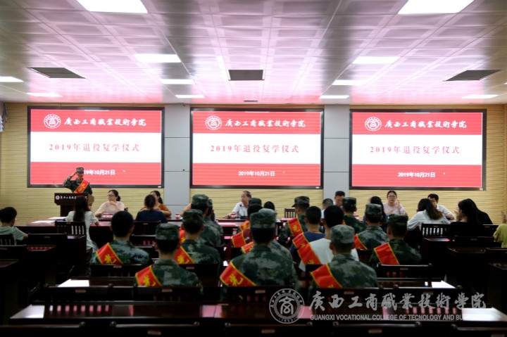? ? ? ? 10月21日下午,我院于鵬飛校區(qū)教學(xué)樓視頻會議室舉辦2019年退役復(fù)學(xué)儀式,學(xué)院副院長李仕欽出席了本次活動(dòng)。學(xué)院征兵工作領(lǐng)導(dǎo)小組、學(xué)院征兵工作站負(fù)責(zé)人、系黨總支書記、分管學(xué)生工作副主任、2019年退役復(fù)學(xué)學(xué)生、2019年退役復(fù)學(xué)學(xué)生入伍前及復(fù)學(xué)所在班級輔導(dǎo)員、學(xué)生代表參加了本次活動(dòng)。