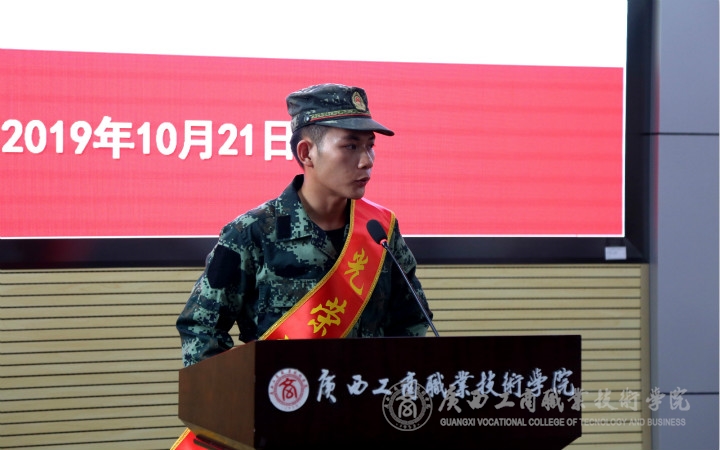 ? ? ? ? 隨后,2019年退役復(fù)學(xué)學(xué)生代表,來自工商1802班的徐仁斯同學(xué)為在場的輔導(dǎo)員及學(xué)生代表分享了自己在部隊(duì)的經(jīng)歷體驗(yàn)與收獲。他表示,軍營生活不僅讓自己學(xué)會了堅(jiān)強(qiáng)和忍耐,學(xué)會腳踏實(shí)地做事,同時(shí)也加深了自己對于榮譽(yù)和使命的理解,懂得了感恩和責(zé)任,錘煉了意志和作風(fēng)。這是一種軍人精神,希望在場的同學(xué)們也能帶著這種精神在學(xué)校學(xué)習(xí)和生活。