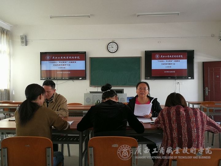 ? ? ? ?為進(jìn)一步推進(jìn)“不忘初心、牢記使命”主題教育工作, 10月29日上午,工會(huì)黨支部在鵬飛校區(qū)教室圍繞宗旨性質(zhì)開(kāi)展專題學(xué)習(xí)研討,全體支部黨員參加研討。