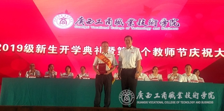 (李維院長為自治區(qū)優(yōu)秀教育工作者闕勇平教授頒獎)