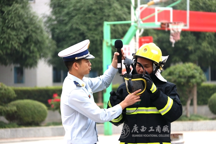 ? ? ? 為了進(jìn)一步提高師生的消防安全意識,增強師生安全防范和防火自救能力。11月12日下午,學(xué)院與廣西消防總隊共同舉辦的消防安全培訓(xùn)及演練活動于鵬飛校區(qū)籃球場舉行。學(xué)院副院長陳寧春出席活動,2019 級安全教育課的任課教師及全體輔導(dǎo)員、后勤管理處(保衛(wèi)處)教師、物業(yè)服務(wù)人員、食堂員工、學(xué)生代表等參與演練場觀摩。