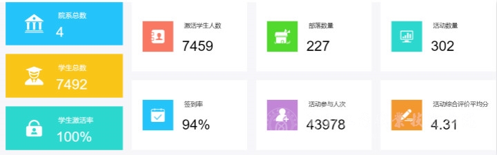 (一)運用共青團“到夢空間”系統(tǒng),實行線上發(fā)布活動,線下參加活動,自2019年9月正式使用以來,共建立部落227個,激活學(xué)生數(shù)7459人,發(fā)布活動302個,活動參與人次為42978。緊密結(jié)合時代發(fā)展和學(xué)生需求及興趣愛好,通過藝術(shù)展演、文明禮儀展示、書畫攝影展、社團成果展等形式,在不斷創(chuàng)新中努力彰顯校園風(fēng)采、展現(xiàn)當(dāng)代大學(xué)生風(fēng)貌。