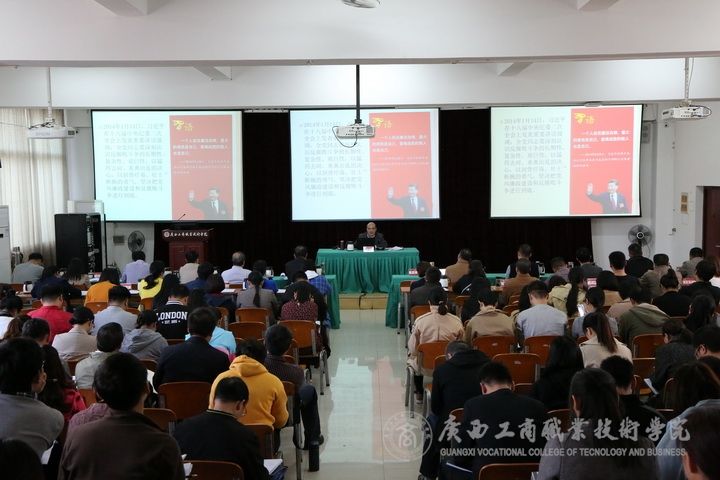 為學習貫徹習近平新時代中國特色社會主義思想,深入推進學院“不忘初心、牢記使命”主題教育扎實開展,貫徹落實全面從嚴治黨戰(zhàn)略部署,筑牢拒腐黨員干部拒腐防變思想防線,2019年11月19日下午,我院于鵬飛校區(qū)教學樓報告廳舉辦廉政黨課。本次黨課由學院黨委書記覃武云主講。學院領導,全體在職教職工黨員,學院非黨員中層領導干部參加黨課。