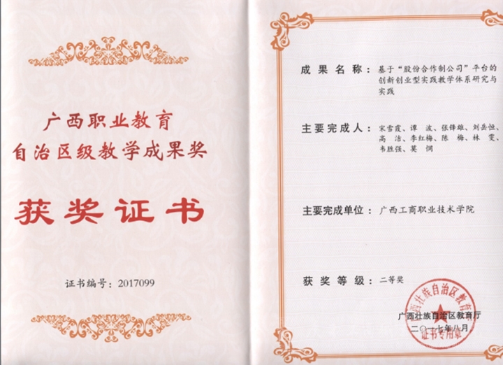 2017年8月,經(jīng)管系教師的“基于股份合作制公司平臺(tái)的創(chuàng)新創(chuàng)業(yè)型實(shí)踐教學(xué)體系研究與實(shí)踐”成果被評(píng)為自治區(qū)教學(xué)成果二等獎(jiǎng)。