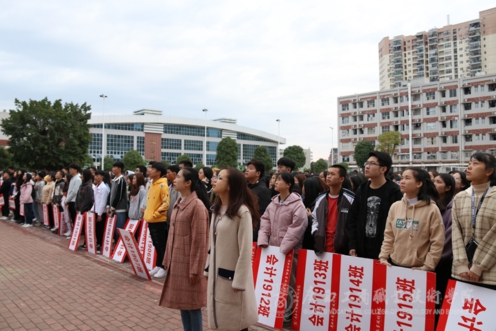 2019年12月2日上午7點30分,我院于鵬飛校區(qū)操場舉行了憲法宣傳周升旗儀式。學院輔導員、全體在校2019級、2019級學生參加本次升旗儀式,活動由財信系黨總支副書記譚序光主持。