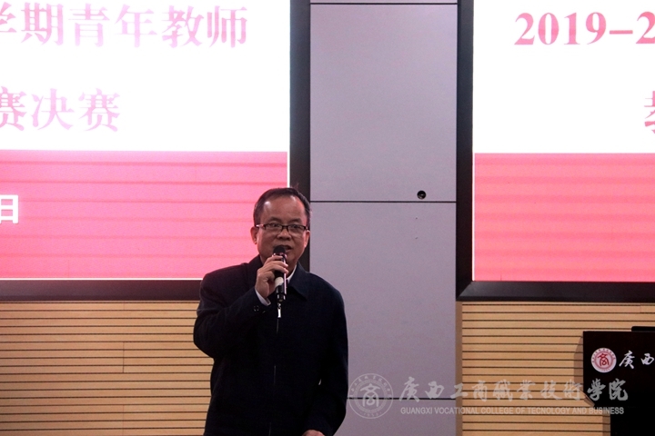 12月10日,我院于鵬飛校區(qū)教學(xué)樓視頻會(huì)議室舉行了2019—2020學(xué)年第一學(xué)期青年教師教學(xué)基本功競(jìng)賽決賽。本次決賽由廣西金融職業(yè)技術(shù)學(xué)院黨委副書記、紀(jì)委書記劉華政,南寧職業(yè)技術(shù)學(xué)院信息工程學(xué)院副院長(zhǎng)許建豪,廣西幼兒師范高等??茖W(xué)校質(zhì)量管理辦公室主任吳嚴(yán),廣西國(guó)際商務(wù)職業(yè)技術(shù)學(xué)院教務(wù)處處長(zhǎng)李慶文,廣西水利電力職業(yè)技術(shù)學(xué)院質(zhì)量督導(dǎo)處處長(zhǎng)龍艷紅,廣西機(jī)電職業(yè)技術(shù)學(xué)院教務(wù)科研處副處長(zhǎng)黃金來,廣西經(jīng)貿(mào)職業(yè)技術(shù)學(xué)院教務(wù)處處長(zhǎng)程波作為本次決賽評(píng)審專家;學(xué)院黨委書記覃武云、學(xué)工部、評(píng)估辦各一名領(lǐng)導(dǎo)、各系部主任、分管教學(xué)工作副主任、教研室主任、副主任、專業(yè)帶頭人、課程負(fù)責(zé)人、教務(wù)科研處全體人員、2019年新進(jìn)教師等參與觀看本次比賽。教務(wù)科研處副處長(zhǎng)李紅梅主持本次比賽。