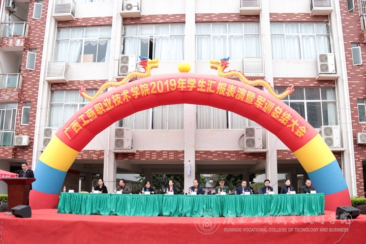 12月23日上午,我院于鵬飛校區(qū)田徑場隆重舉行2019年學生匯報表演暨軍訓總結(jié)大會。學院副院長李仕欽、武警廣西總隊機動支隊一大隊大隊長黃康洋出席大會,教務科研處、后勤管理處和各系主任、黨總支書記、學工副主任、2019級輔導員、2019級全體參訓學生、教官等參加了此次大會,大會由黨委學生工作部副部長林雯主持。