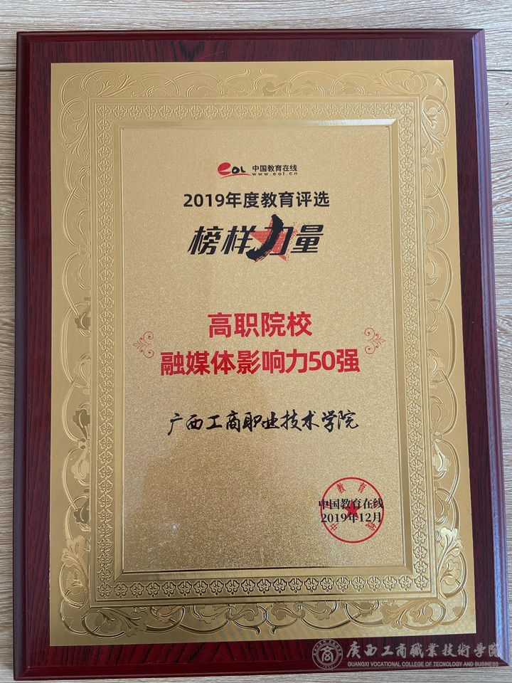 近日,“榜樣力量·中國教育在線2019年度教育評選”獲獎榜單出爐!廣西工商職業(yè)技術學院榮獲中國教育在線2019年度高職院校融媒體影響力50強。本次評選共設本科、高職、高中、中職等四大類9個分項獎項。評選旨在對立足教育本質并不斷突破,為實現(xiàn)中國教育的跨越性發(fā)展積聚創(chuàng)新力量的榜樣單位進行表彰和推薦,以榜樣力量探索教育發(fā)展軌跡,分享教育改革經(jīng)驗,共同為中國教育夢提供教育引擎、思想支撐、精神動力。