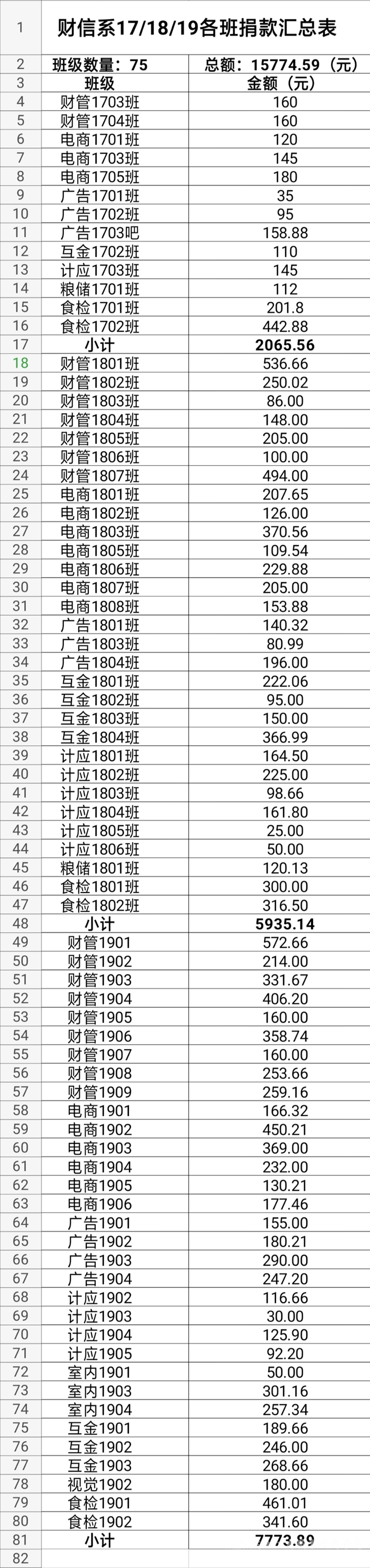 (財(cái)信系捐款明細(xì)表)