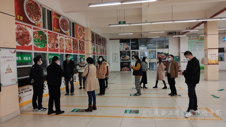 疫情期間校園食品安全涉及到廣大師生的權(quán)益,為強化我院食堂食品安全管理,控制堂食就餐安全風(fēng)險,切實保障我院食堂疫情期間有序就餐,學(xué)院后勤管理處于2020年4月7日早上9:30-12:00組織開展了疫情應(yīng)對學(xué)生就餐模擬演練,學(xué)生就餐模擬演練在學(xué)校鵬飛校區(qū)一、二樓食堂、中堯校區(qū)一、二樓食堂進(jìn)行,主管學(xué)院后勤管理工作的副院長陳寧春現(xiàn)場指導(dǎo)演練活動,后勤管理處副處長莫春華、后勤管理處全體中層、各行政教輔部門、學(xué)生工作部中層領(lǐng)導(dǎo)、各系學(xué)工副主任以及2018級、2019級輔導(dǎo)員共計二十余人參與演練。