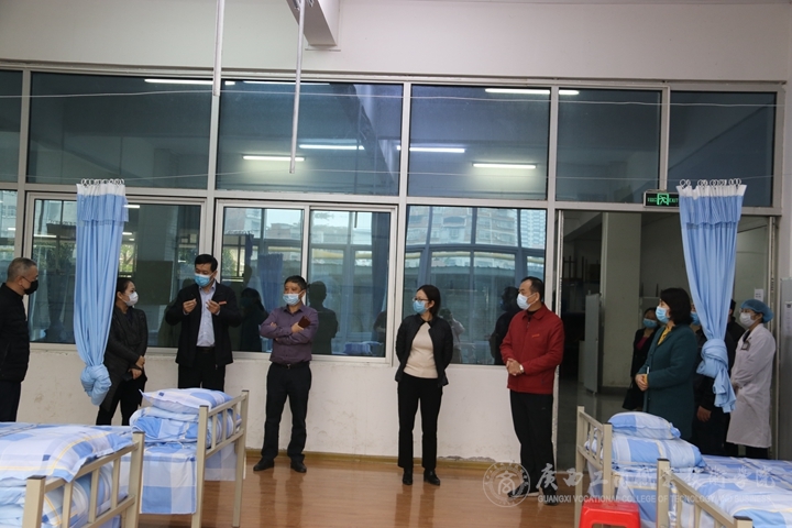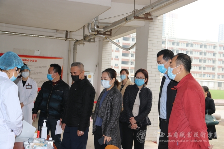 匯報(bào)會(huì)結(jié)束后,評(píng)估組在李維院長(zhǎng)、蒙啟成副書(shū)記、安仲文副院長(zhǎng)、陳寧春副院長(zhǎng)及有關(guān)工作人員的陪同下,分別實(shí)地檢查了我院的教室、學(xué)生宿舍、醫(yī)務(wù)室、隔離室、留觀室、防疫物資儲(chǔ)備室、宣傳欄、食堂等場(chǎng)所的開(kāi)學(xué)準(zhǔn)備工作情況,現(xiàn)場(chǎng)查看了師生返校演練過(guò)程,并查閱了有關(guān)臺(tái)賬,對(duì)負(fù)責(zé)具體工作的相關(guān)工作人員進(jìn)行了詳細(xì)的問(wèn)詢和具體的工作指導(dǎo)。