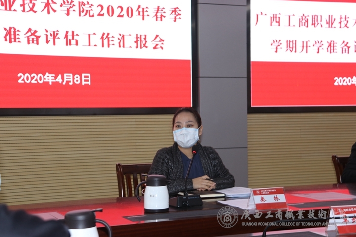 2020年4月8日上午,學(xué)院召開(kāi)2020年春季學(xué)期開(kāi)學(xué)準(zhǔn)備評(píng)估工作匯報(bào)會(huì)和反饋會(huì),自治區(qū)直屬高校開(kāi)學(xué)評(píng)估工作第十五組組長(zhǎng)、自治區(qū)糧食和物資儲(chǔ)備局人事處副處長(zhǎng)秦林,評(píng)估組成員、廣西質(zhì)量技術(shù)工程學(xué)校副校長(zhǎng)陳正剛和環(huán)境衛(wèi)生與地方病防制所主任醫(yī)師黃林蒞臨我院開(kāi)展開(kāi)學(xué)準(zhǔn)備評(píng)估工作。我院全體學(xué)院領(lǐng)導(dǎo)和開(kāi)學(xué)工作組負(fù)責(zé)人、部分成員參加了會(huì)議。