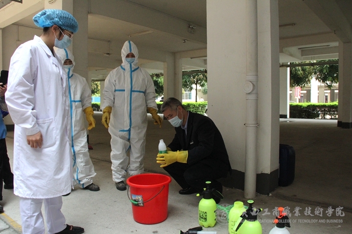 2020年4月9日,學院于鵬飛校區(qū)舉行2020年春季學期開學應急演練活動。全體在校學院領導蒞臨演練活動現(xiàn)場督察并指導演練工作。當日上午,學院后勤管理處、資產(chǎn)管理中心進行了校園消殺和防疫物資發(fā)放、以及師生食堂錯峰錯時分餐就餐演練。